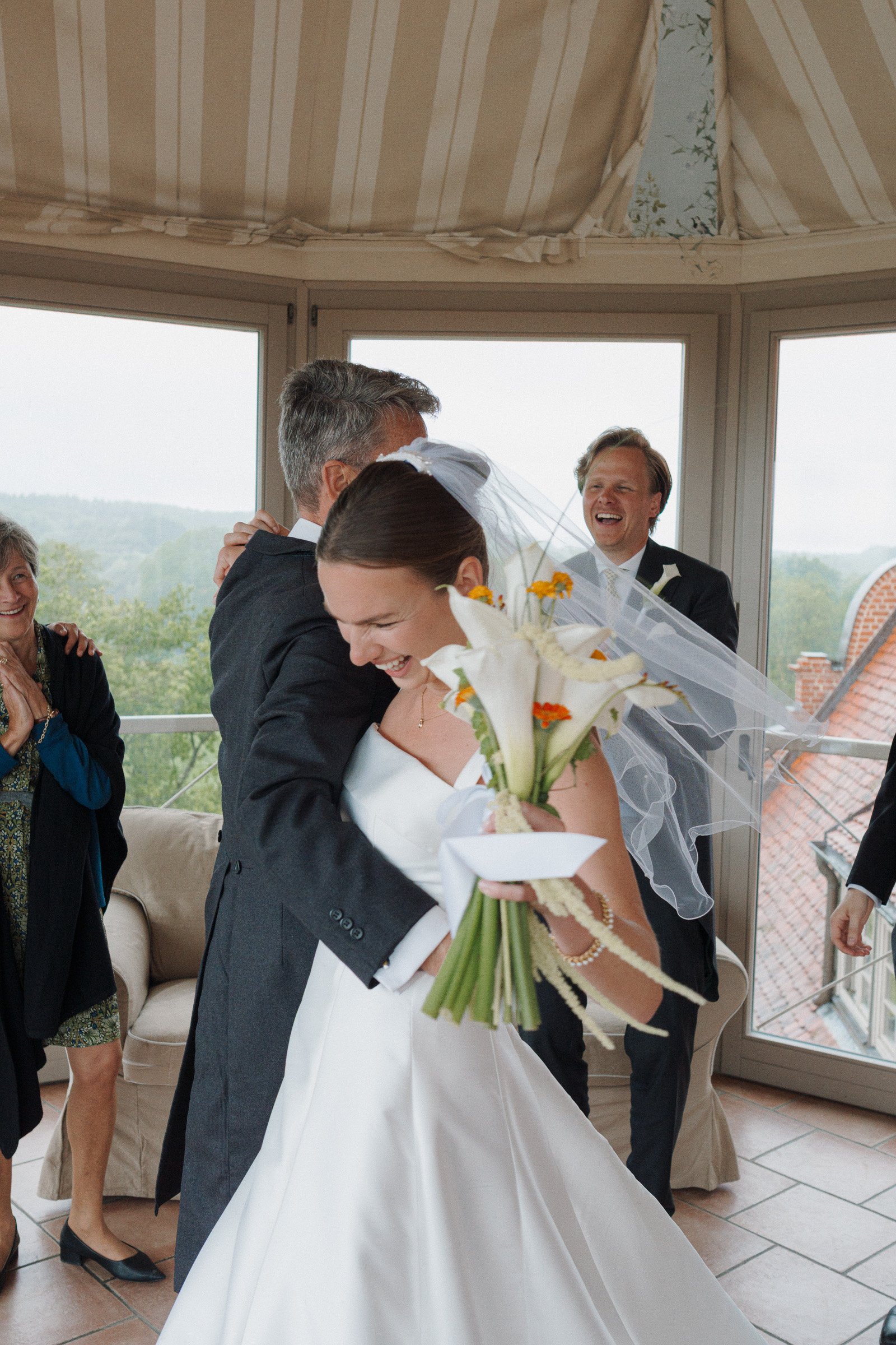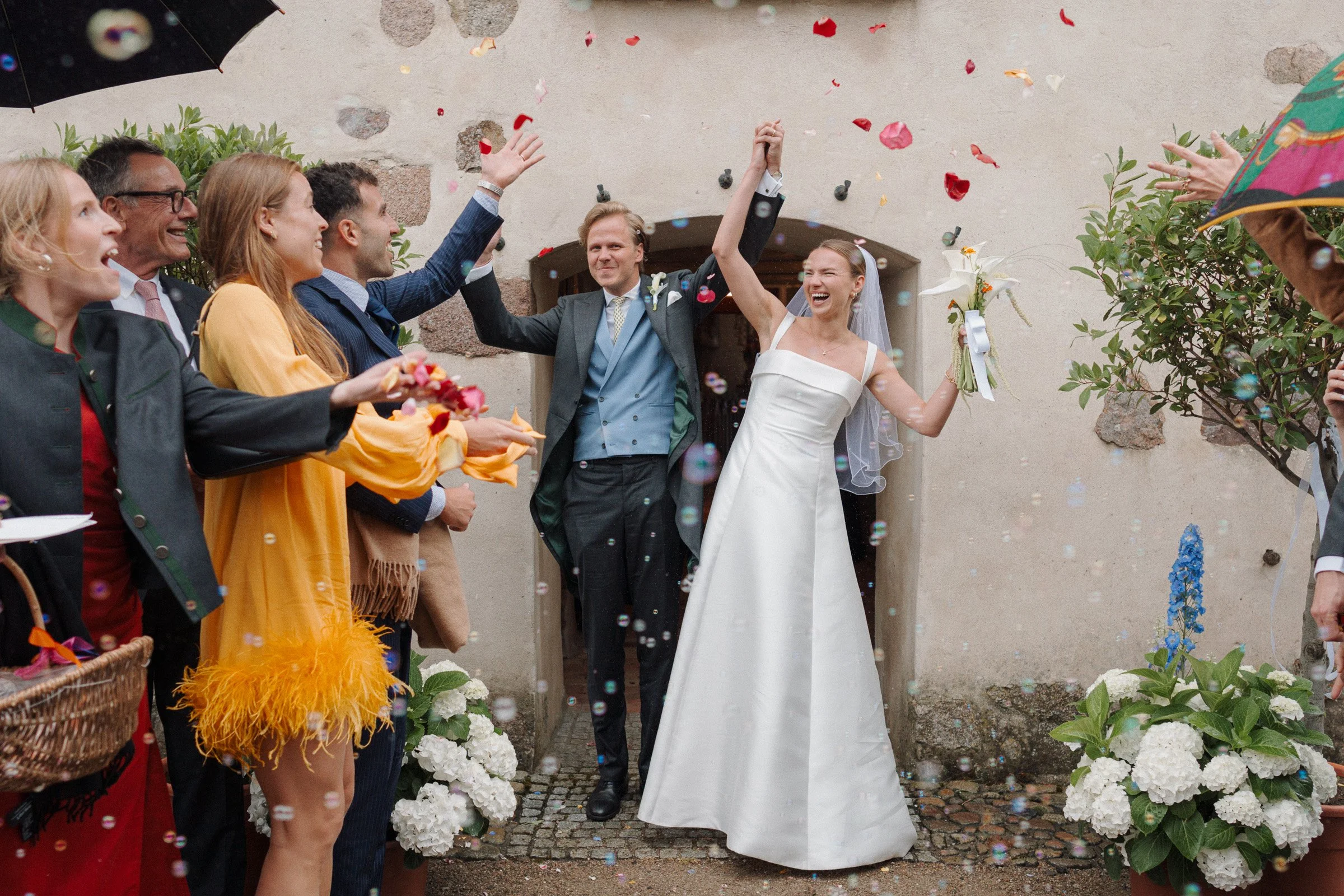 At Castle Ulrichshusen, set in the quiet countryside of northern Germany near the Mecklenburg Lake District, the wedding unfolded over two days. A refined dinner the evening before led into a rainy wedding day with a church ceremony and a long, joyful reception.